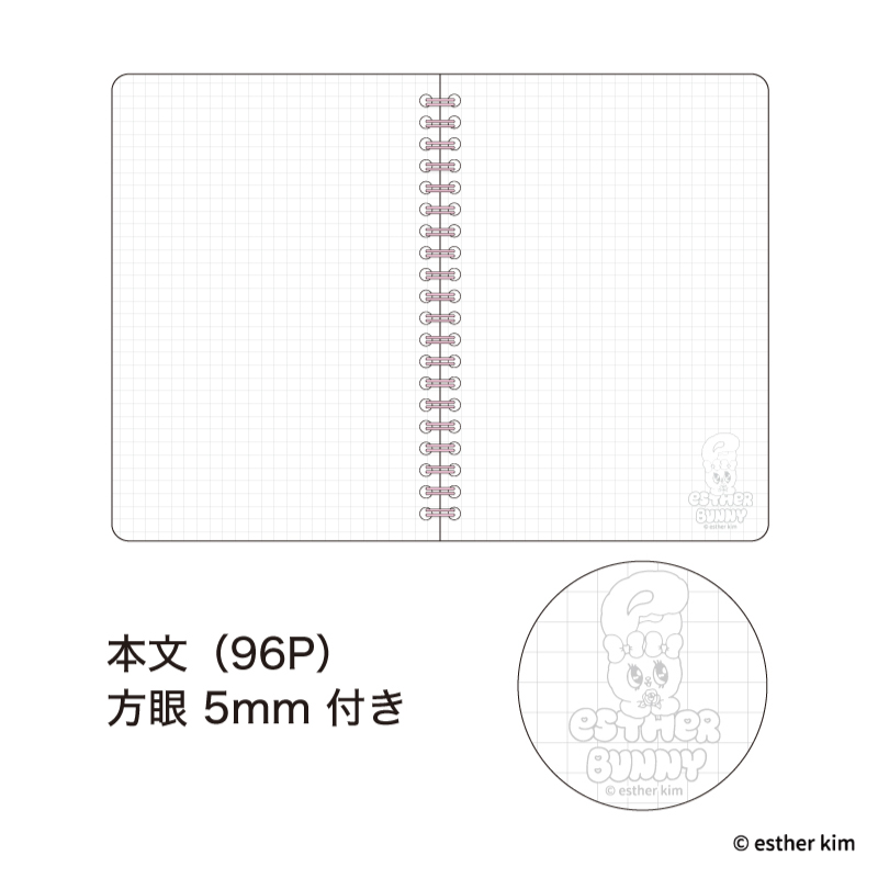 リング部分はキュートなピンクカラーで、本文は表やグラフが書きやすい5mm方眼となっています。