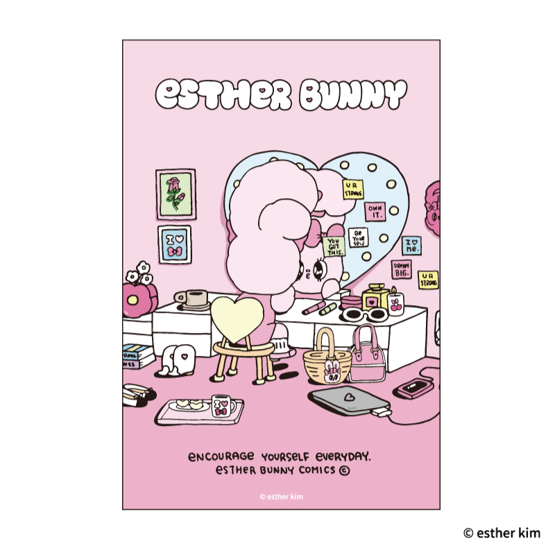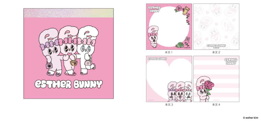 韓国系アメリカ人のEsther Kim氏がデザインしたPOPでガーリーなテイストのウサギのキャラクター。世代や文化を超えたメッセージをみんなに届け、自分自身を愛するということを大切にしている。