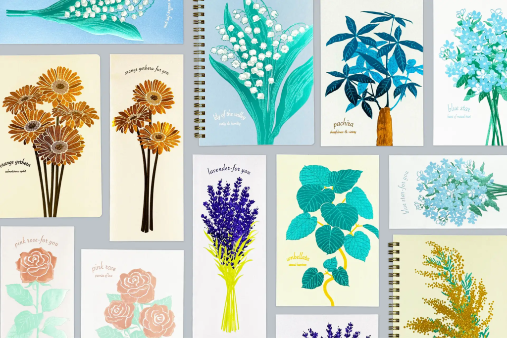 「Hakuoshi Botanical」シリーズの新アイテム〈ポストカード〉〈リングノート〉〈レターセット〉が登場!既存の「バラ」「ウンベラータ」「パキラ」「ブルースター」「ミモザ」に加え、新柄の「スズラン」「ガーベラ」「ラベンダー」が追加!それぞれの花が持つ魅力を箔押し加工で一層引き立てています。