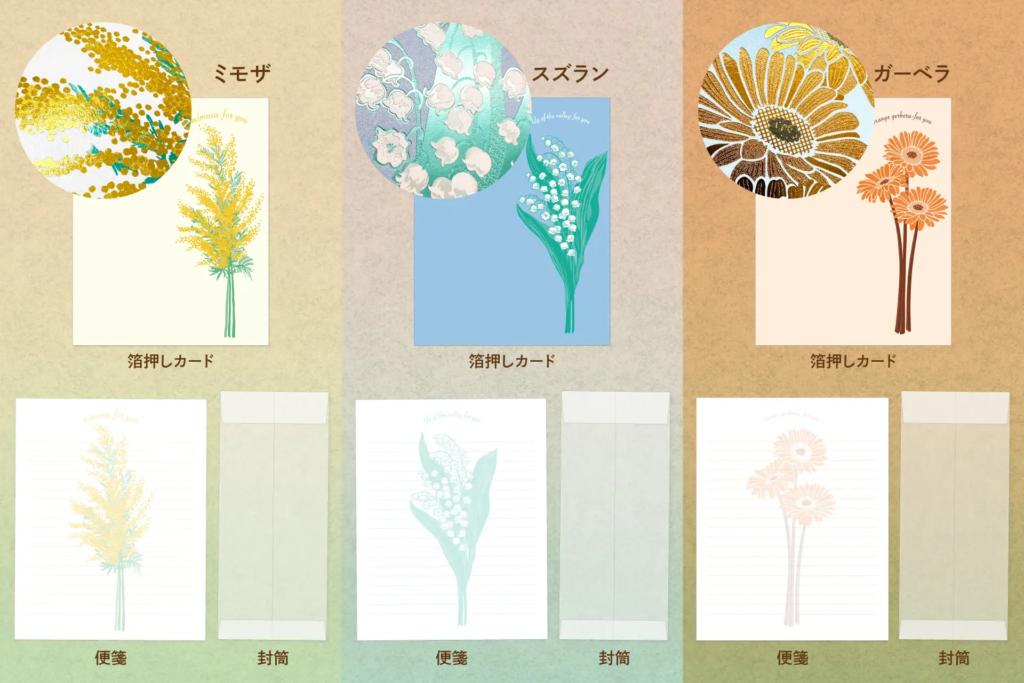 商品価格(消費税込み):各770円[便箋3枚/カード1枚/封筒1枚]