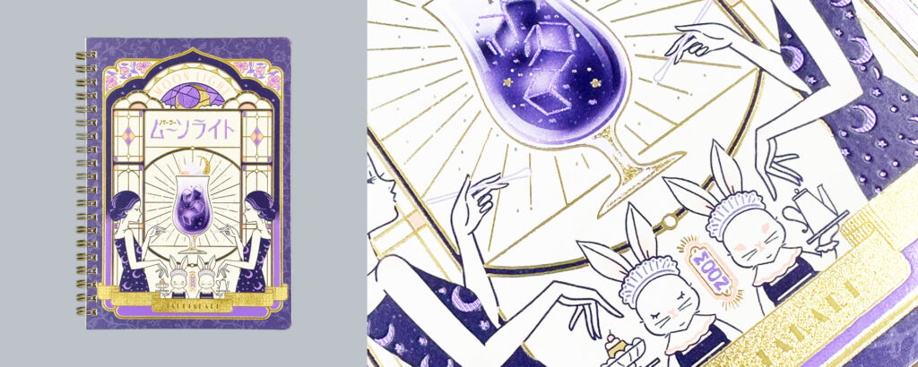 3色の箔とテクスチャ加工によってレトロ可愛いイラストがきらきらと輝きます。