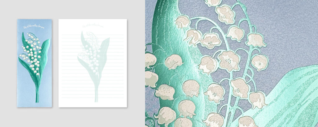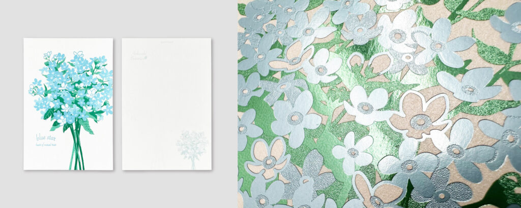 先月開催された「文具女子博2025 横浜会場」にて先行販売!多くの方々に好評いただいた人気商品です。花びらの重なりや葉の一枚一枚を、繊細な箔押しのみで丁寧に表現した「Hakuoshi Botanical」シリーズ。葉脈や花の立体感は、凹凸のある箔加工で再現し、光の角度によって表情を変える輝きが、植物本来の繊細さと奥行きを引き立てます。自分用にはもちろん、大切な人へのプレゼントにもぴったりなアイテムです。