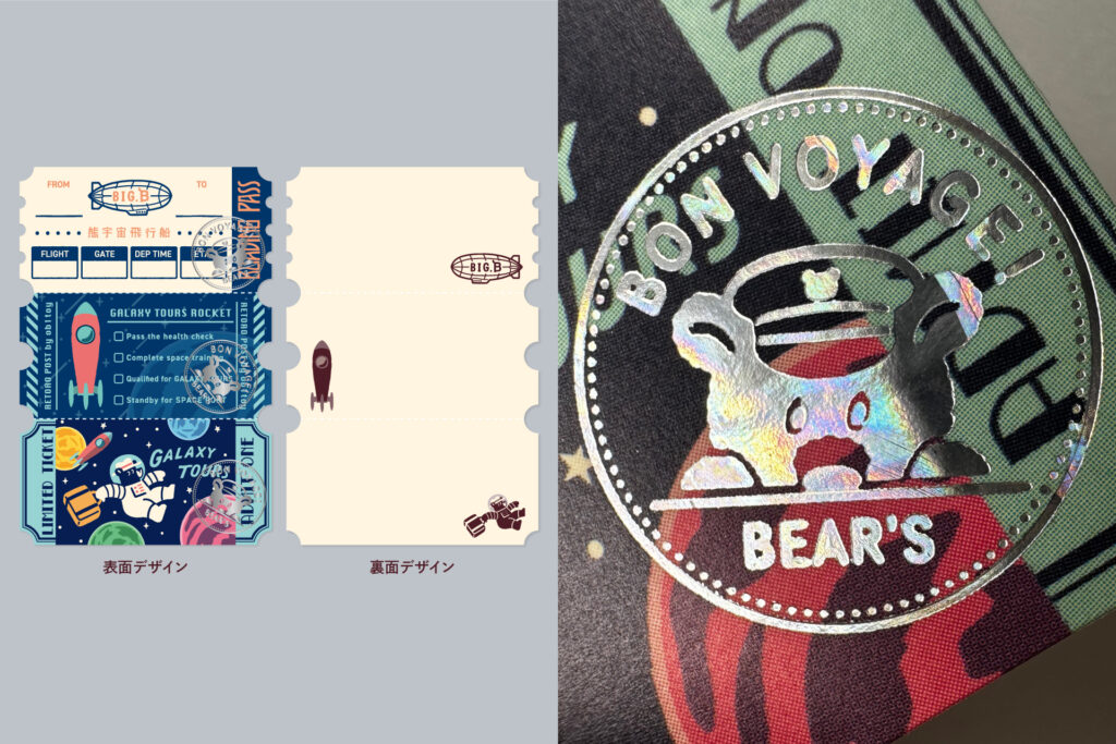 箔の質感や透明ホログラムで物語の象徴性を演出しています。
