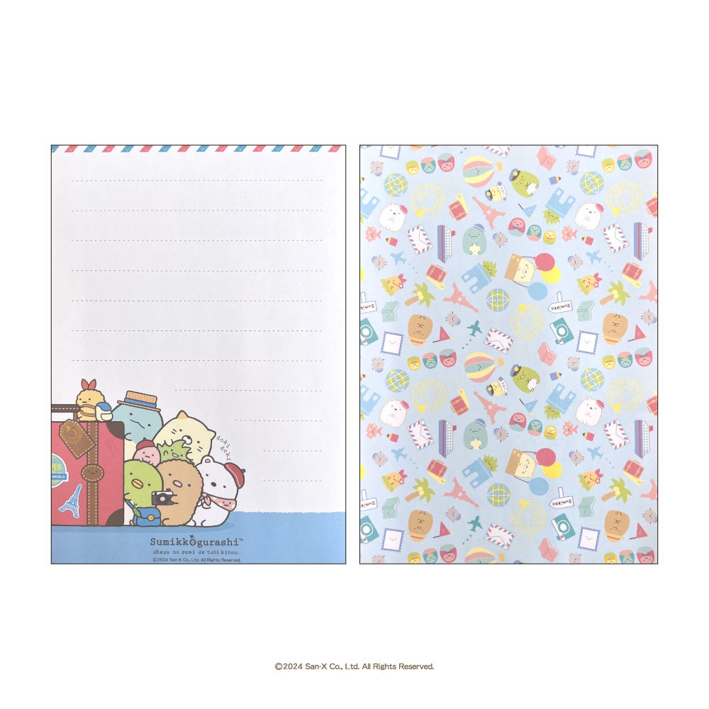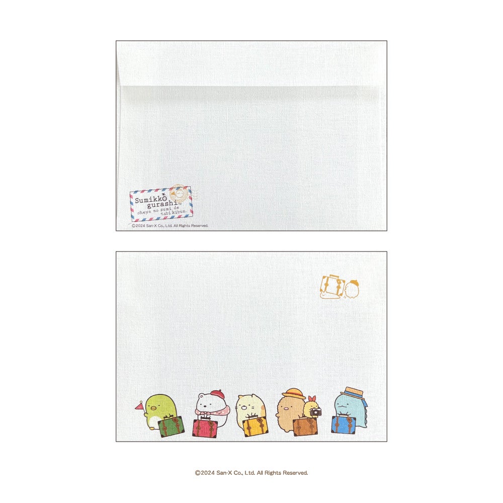 「すみっコ」たちが描かれたフレーム切手(切手デザイン4種)と封筒、便箋、シーリングワックス風シールがセットになった商品です。
