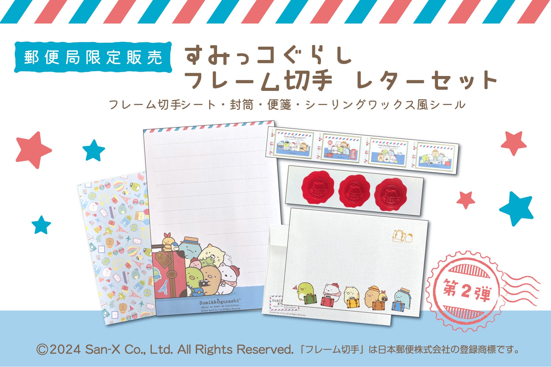 『すみっコぐらし』のキャラクターがデザインされた「フレーム切手」「封筒」「便箋」「シーリングワックス風シール」の4アイテムをセットにした『すみっコぐらし フレーム切手セット 第2弾』を、2024年4月22日(月)から一部の郵便局店頭および「郵便局のネットショップ」限定で販売開始いたしました。